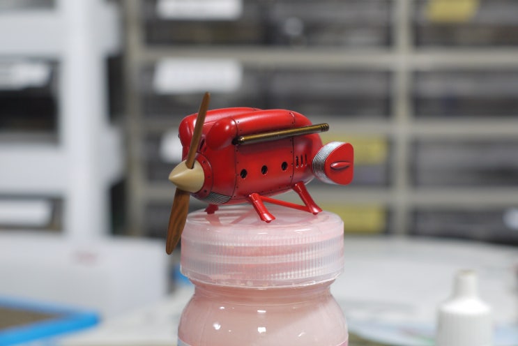 엔진 내부 조립 때문에 마감재 뿌리고 조립 했다... 프로펠러의 나무결 느낌 적당하고 패널라인 명암 적당...