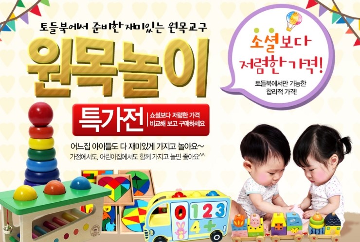 꿈과 지혜를 길러주는 토들북! 지금 토들북에서는 원목놀이 특가전이 진행중...