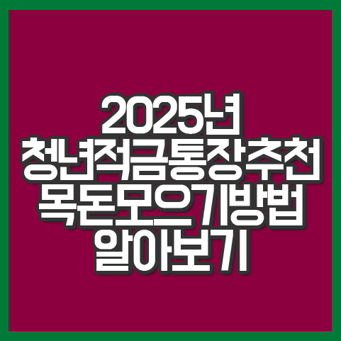 2025 청년 적금통장 추천 목돈모으기 시작하기전 체크해보기