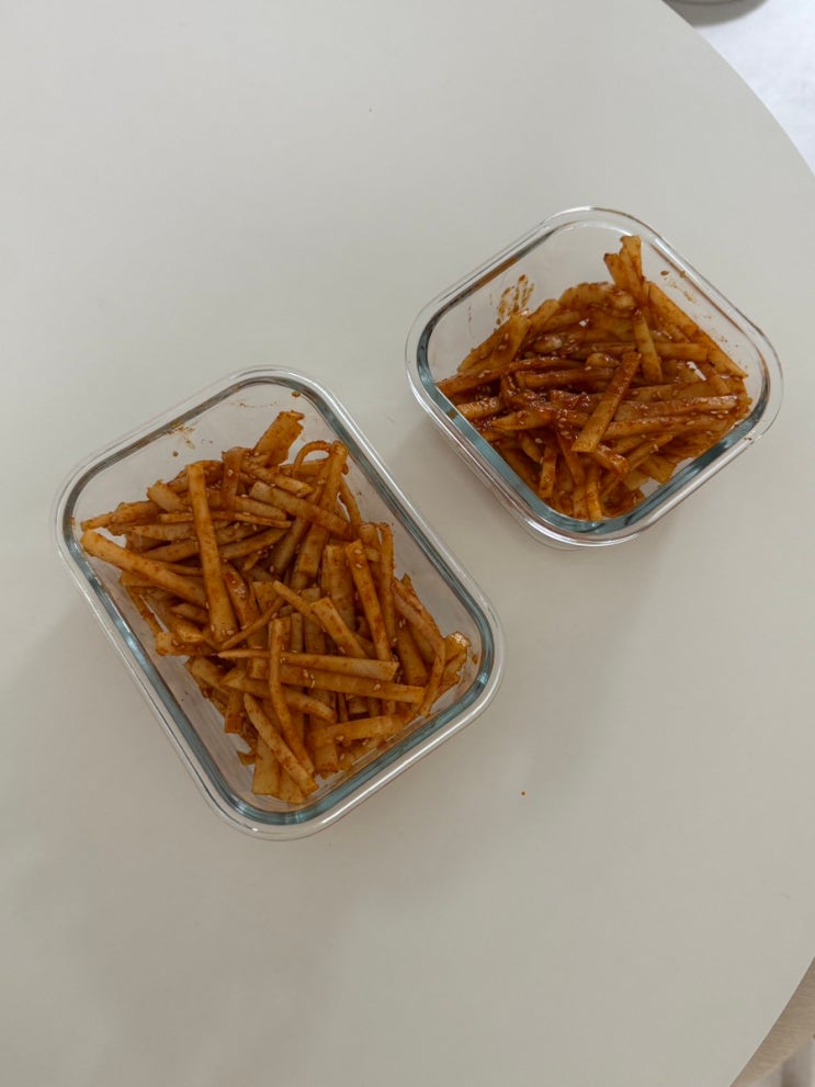 저번에 무생채가 먹고싶어서 해봤는데, 소금을 자신있게 넣었던 나머지 ~~ ^_ㅠ 잘 재웠더니 너무너무 짜게...