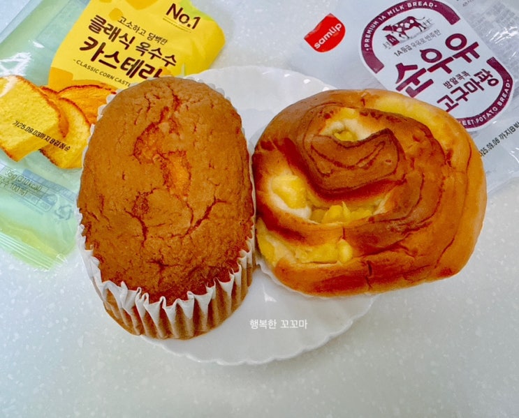 CU 편의점에서 신상빵 2종류 클래식 옥수수 카스테라와 순우유 밤알콕콕 고구마팡 구입해 봤어요. 모두 ...