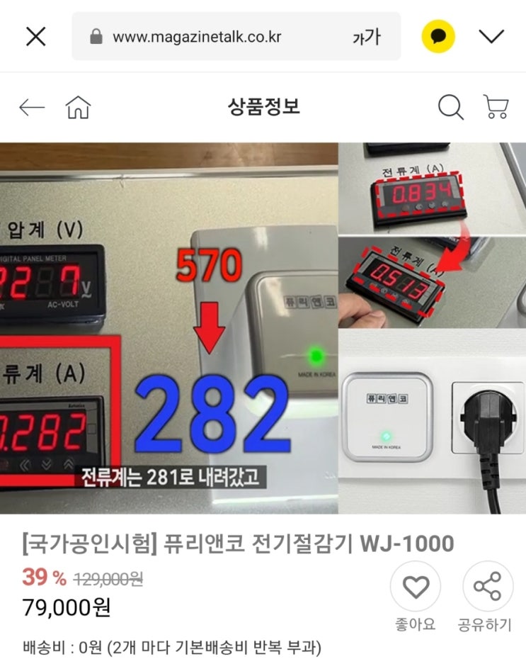 [국가공인시험] 퓨리앤코 전기절감기 WJ-1000 https://www.magazinetalk.co.kr/Goods/Detail/SAR667...