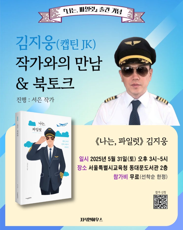 ✔김지웅(캡틴 JK) 북토크 공지 책 <나는, 파일럿> 출간 기념 북토크 소식을 알려드립니다. 조종사...
