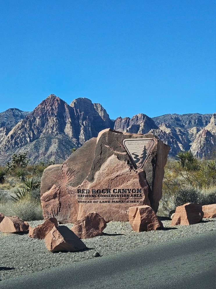 레드락캐니언 국립보호구역에서 30분정도를 달리니 캘리포니아주에서 네바다주의 라스베가스에 도착했어요~...