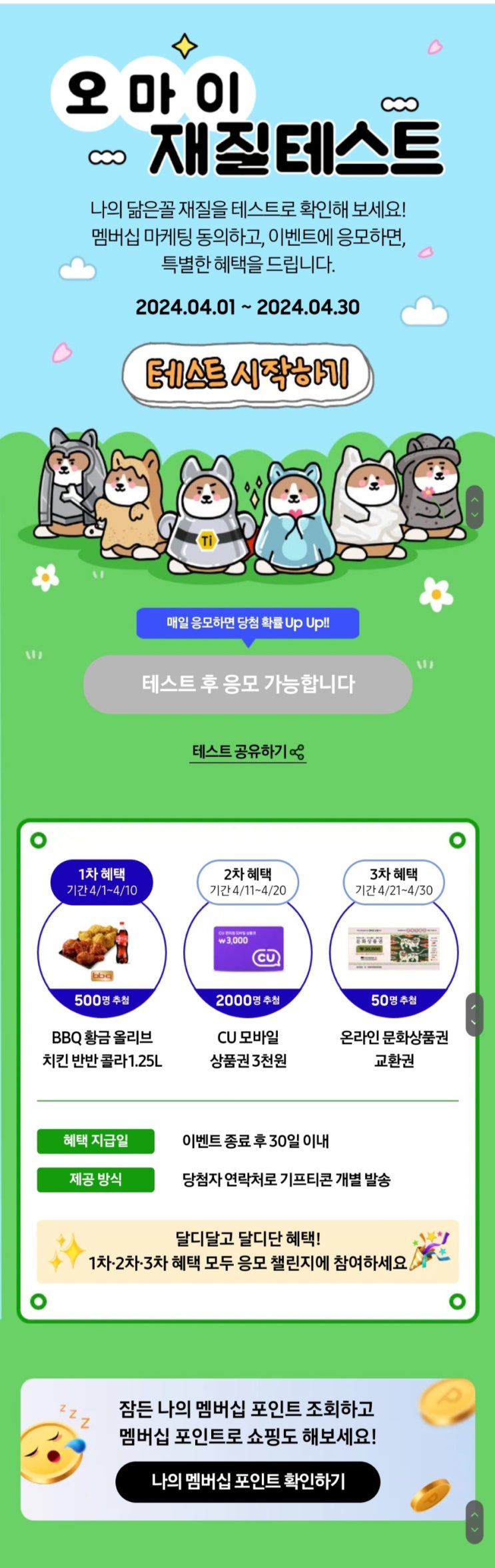 [이벤트] 삼성전자 오마이재질테스트(BBQ황금올리브 500명/CU모바일권 2,000명/문화상품권 50명)_4.1~4.30 매일참여가능