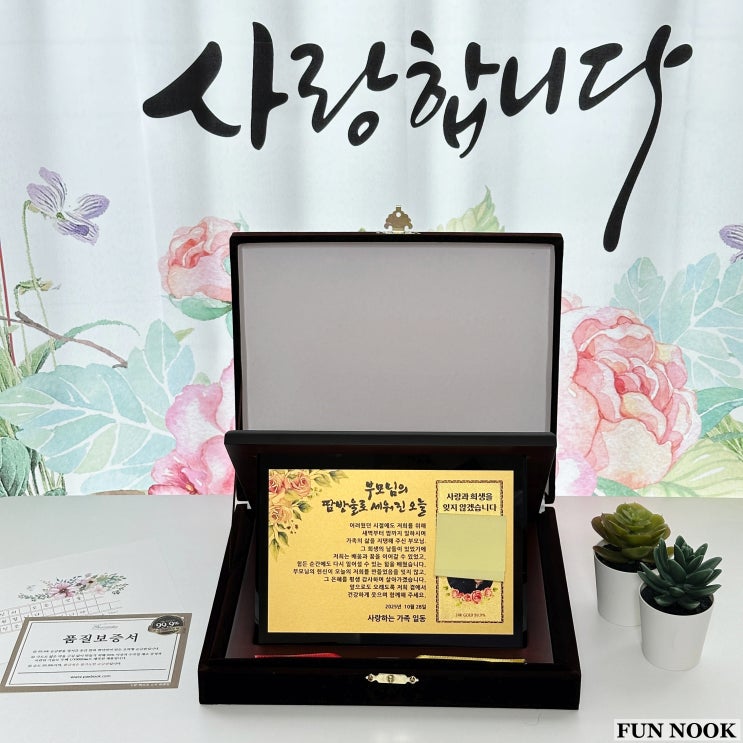 추석 결혼기념일 선물로 좋은 패모아 부모님 순금감사패 퇴직기념패 순금상패 순금패 제작