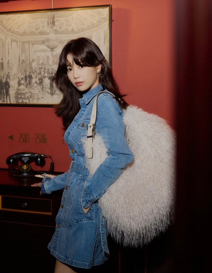 기은세 데일리룩|마이클 코어스 데님 원피스 & 프린지 가방 코디법