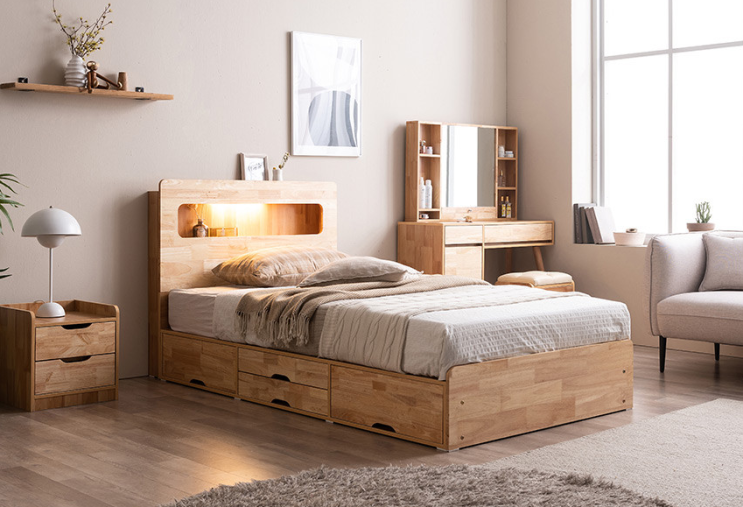삼익가구 수납 침대 프레임 원목헤드
