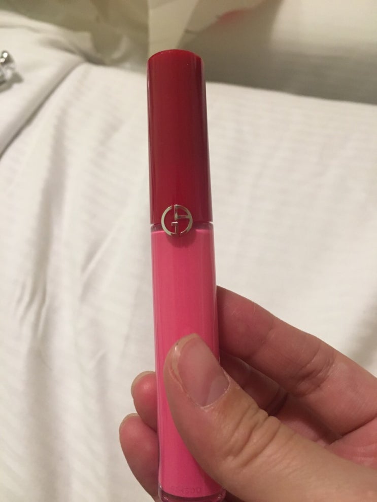 아르마니 립 마에스트로 504 발색이에요. 면세로 샀는데 유명한 색상은 다 품절504는 진한 핑크색이에요.손...