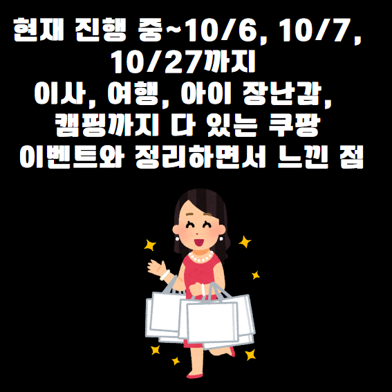 현재 진행 중~10/6, 10/7, 10/27까지 이사, 여행, 아이 장난감, 캠핑까지 다 있는 쿠팡 이벤트와 정리하면서 느낀 점