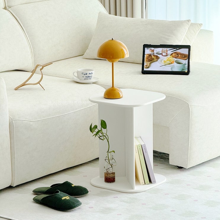 화이트 거실 인테리어 가구 탄스 PISA ESSENTIAL 미니스툴 겸용 소파 사이드테이블로 집꾸미기 업그레이드