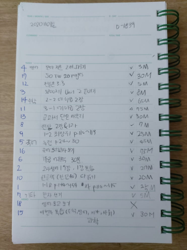 중학생 공부계획표 중학생 공부방법 안녕하세요~? 지난주 일요일에 우리아들이 공부했던 내용을 블로그에 ...