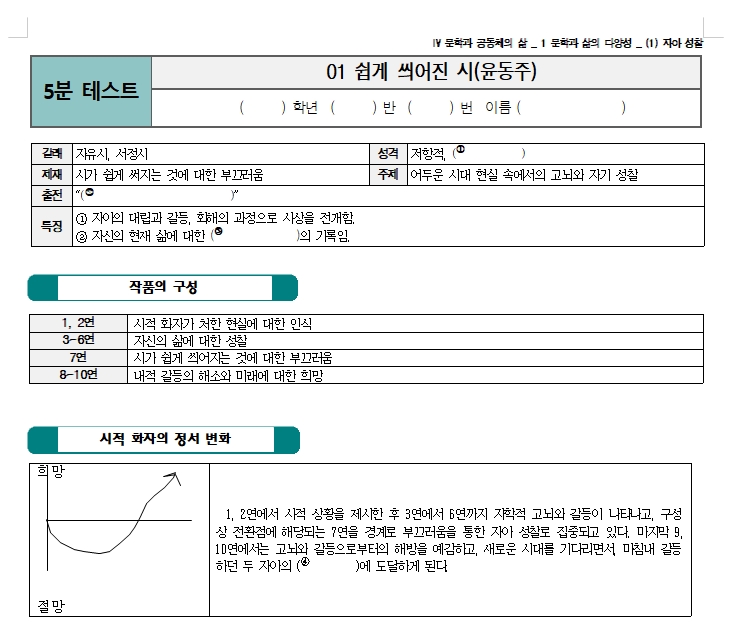 쉽게 씌어진 시 문제 해석 다운, 무료 파일 HWP, PDF