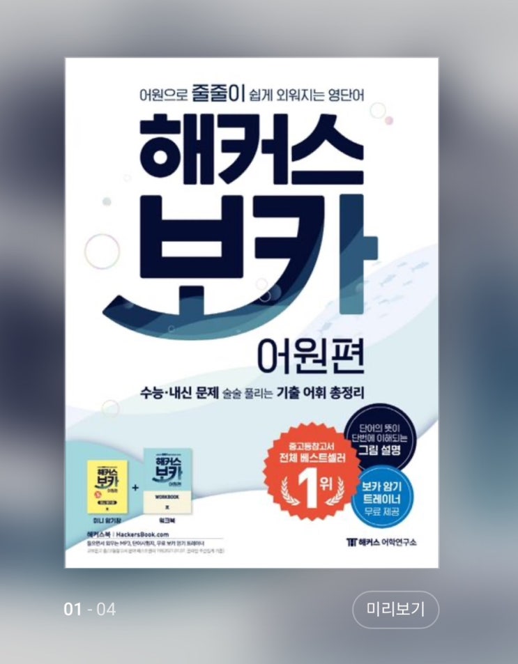 해커스 보카 1회독 완료. 내일부턴 파생어 중심으로 2회독 시작해야겠다. 어제 산 시원스쿨인가에서 나온 ...