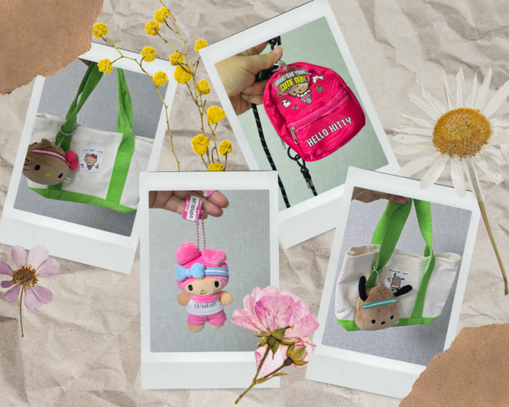 올리브영에서 산리오랑 콜라보해서 판매하고 있는 산리오 토트백이랑 큐티런 키링, 미니 사코슈백 구매해봄...