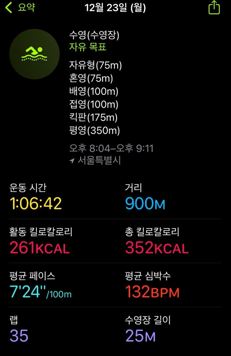 정말 오래만의 수영 명절과 몸 컨디션 이슈로 거의 2주만에 복귀했다. 죵말이지 강추위라 고민했지만 그래...