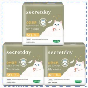 시크릿데이 순한코튼 린넨 오가닉커버 입는 오버나이트, 중대형, 6개입, 3개 실제 사용 후기 1. 시크릿데이...