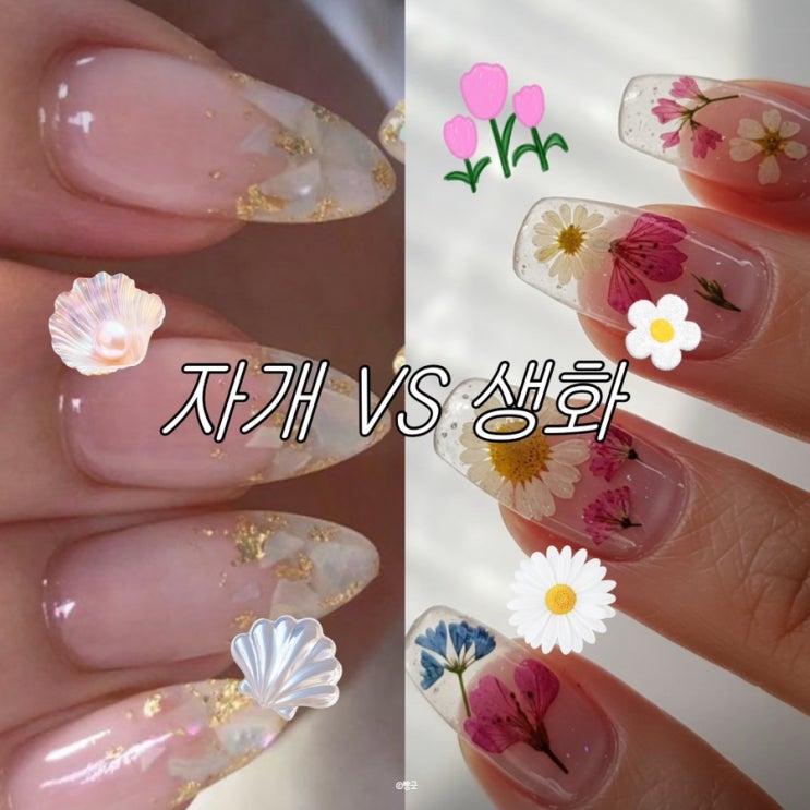 봄네일아트 디자인 자개 VS 생화네일 취향저격