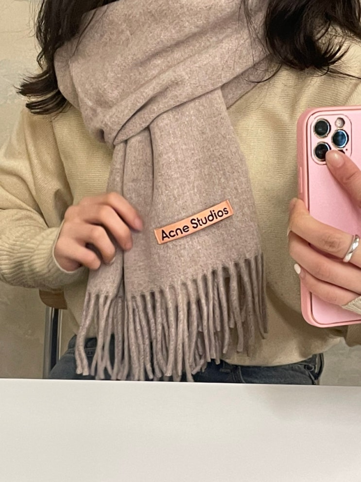 [KREAM/Acne Studios] 크림에서 구매한 정품 아크네 스튜디오 목도리 오트밀 멜란지 네로우 착샷 리얼후기