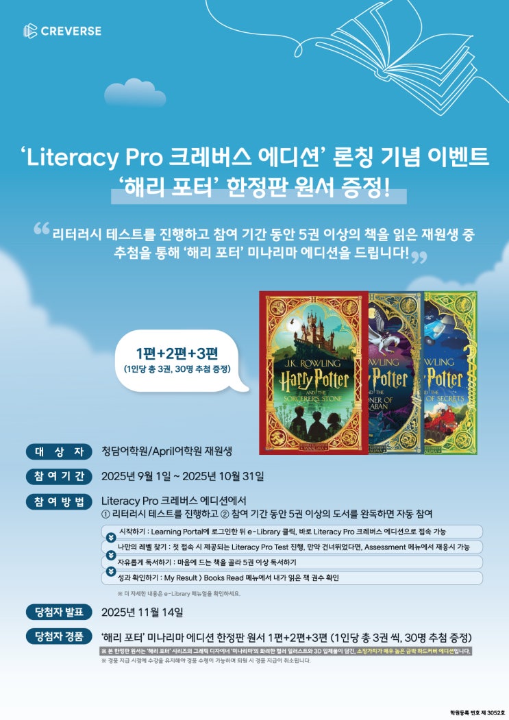 Literacy Pro 크레버스 에디션 론칭 기념 이벤트 ' 해리포터' 한정판 원서 증정!