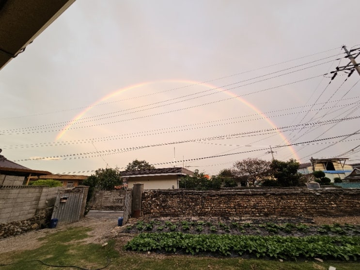 연휴를 맞아 친정나들이를 왔는데 어제 비가 갠후 하늘에 뜬 쌍무지개 처음에는 한쪽만 살짝 보이더니 나중...