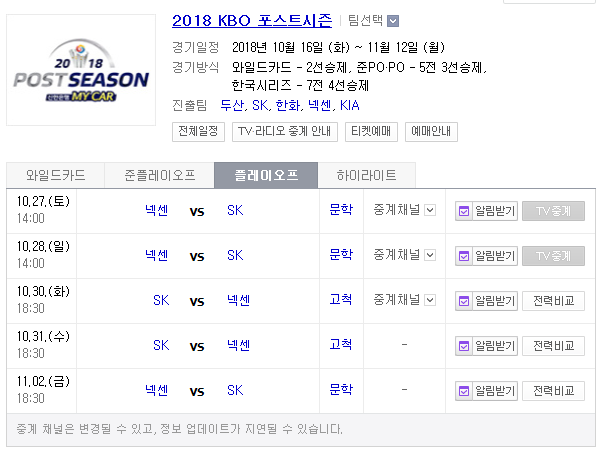 2018 KBO 포스트시즌 플레이오프 SK vs 넥센