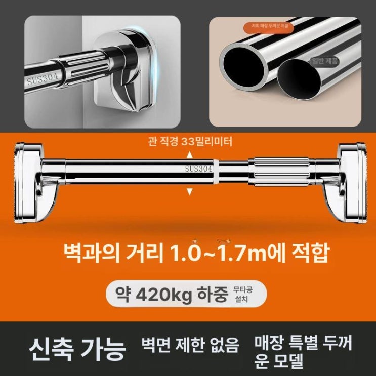 힘센압축봉 210260cm 화이트 커튼봉 무타공 32MM 두꺼움으로 실내 분위기 완벽 변화