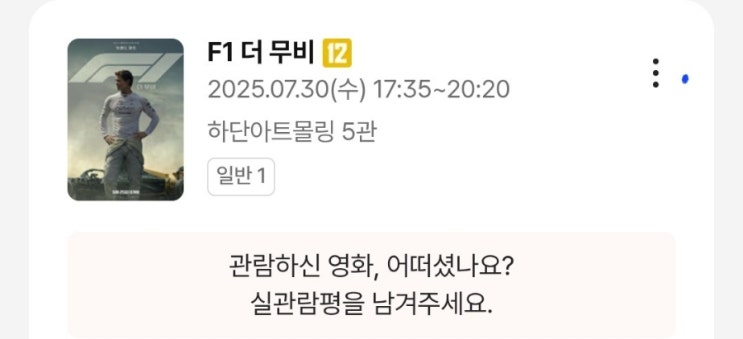 정부영화할인쿠폰 F1더무비 천원 관람 후기 귀멸의 칼날 : 무한성편도 천원에 예매 완료