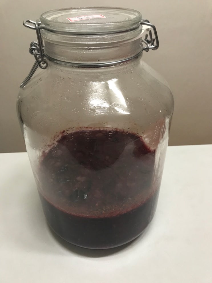 얼마전에 담근 포도주!!! 원래 작은병 3개에 담궜었는데 병이 필요해서 큰...5000ml병을 주문해서 한번에 ...