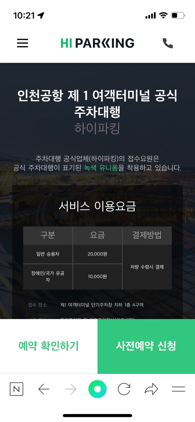 인천공항터미널1 주차대행 예약및제휴카드할인정보