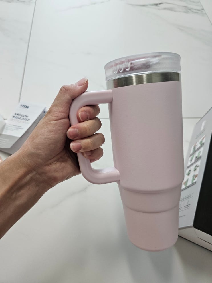 요즘 유행하는 스댕리텀블러. 처음에는 저렇게 큰걸 어찌들고다녀 했는데 보다보니 예쁘긴하다.. 그런데 너...