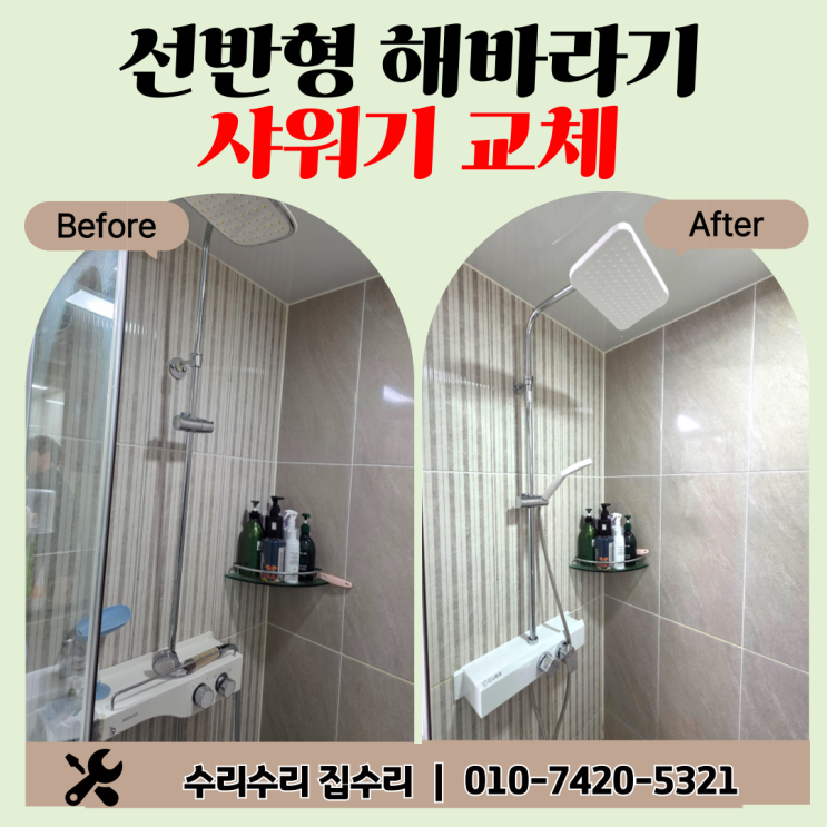 청주 오창 선반형 해바라기 샤워기 교체 시공 후기 안녕하세요! 마술처럼 집수리!! 수리수리 집수리입니다....