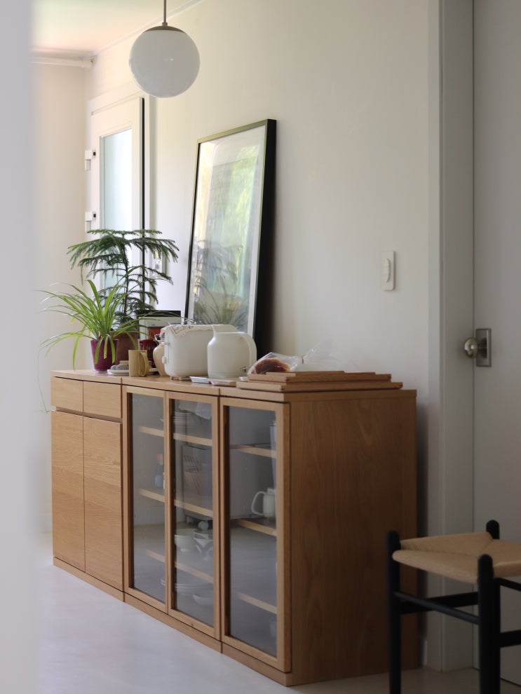 무인양품 그릇장 떡갈나무 목제 캐비닛ㆍ유리도어 MUJI Wooden cabinet Glass door Oak