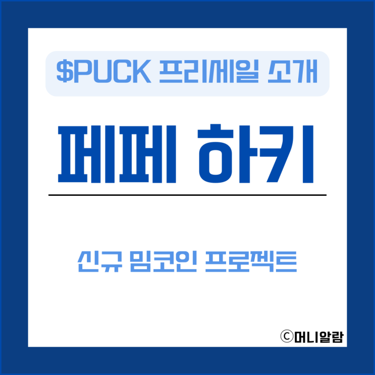 안녕하세요. 머니알람입니다. 이번 포스팅에서는 신규 밈코인 페페 하키 $PUCK 프로젝트에 대해서 다뤄...