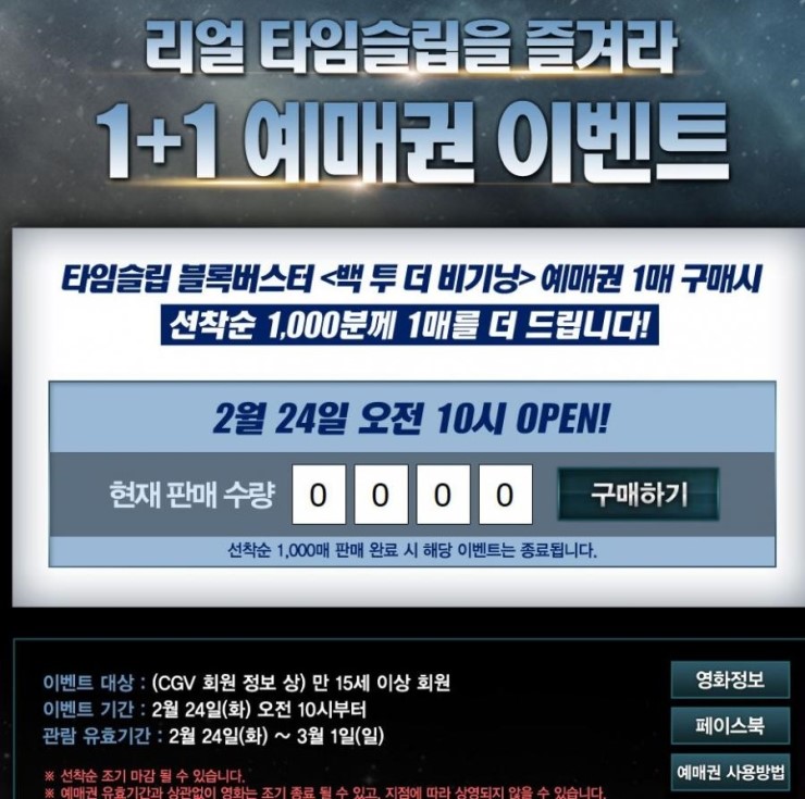 [CGV]백 투 더 비기닝 1+1예매권(9,000원/인터넷 예매)