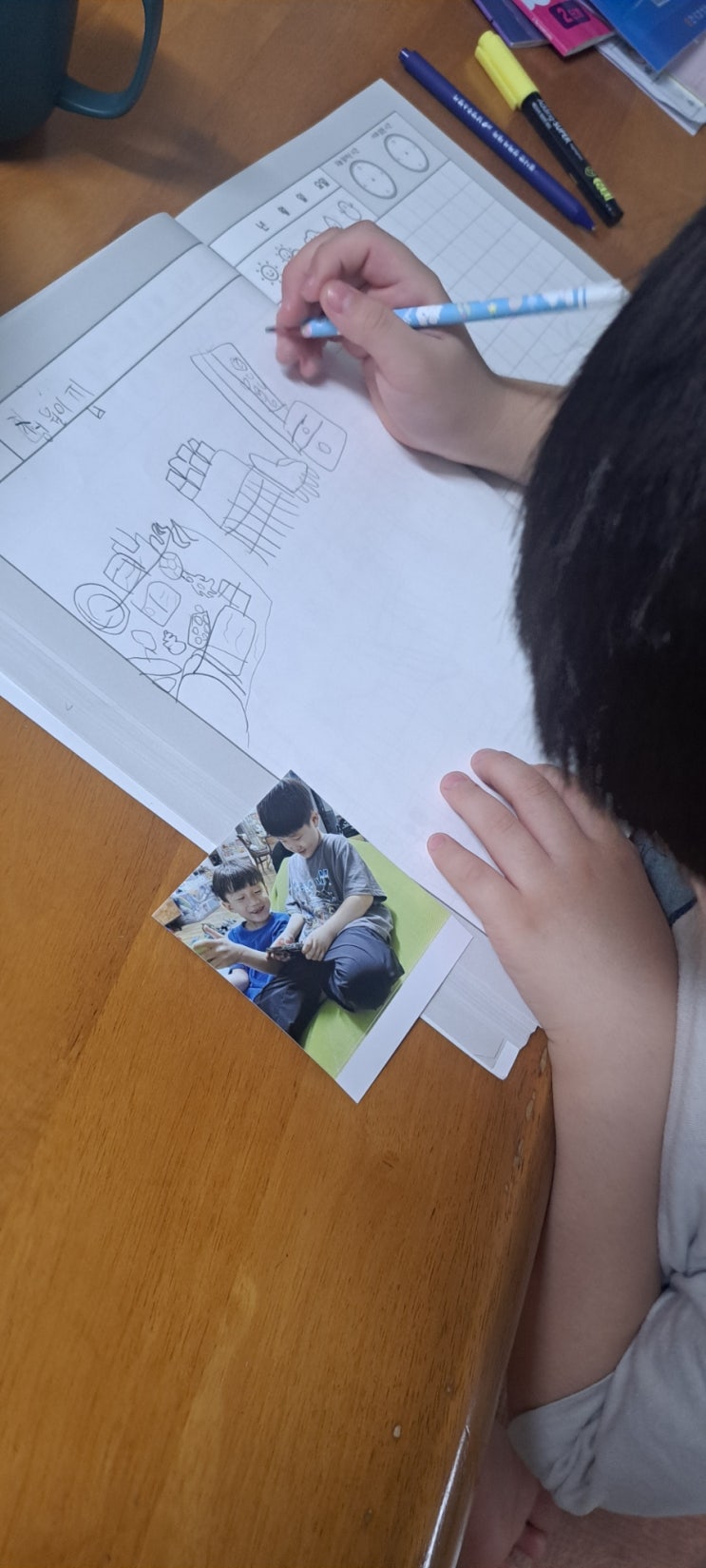 드로잉 학원 다니고싶다는데 금액이; 내가 어릴때썼던 색연필 귤이에게주니 그림이 잘그려진다고 아주 좋아...