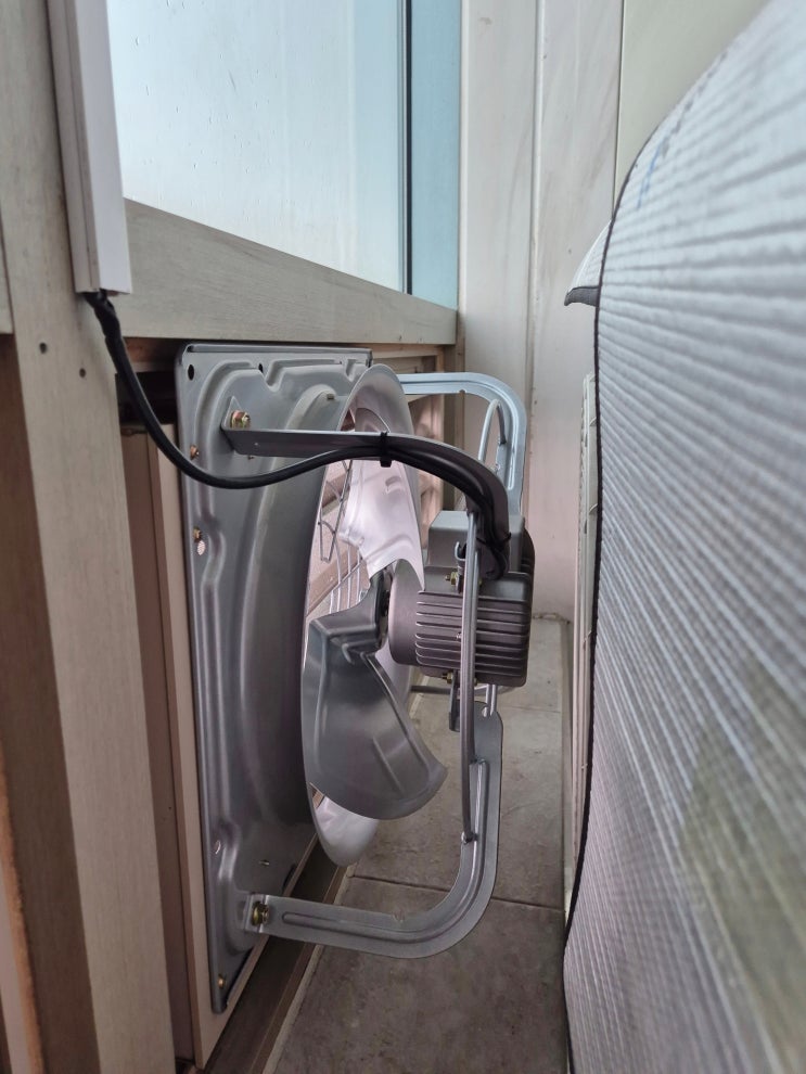에어컨 에러코드 OD 뜸. 베란다 실외기 앞에 환풍기 설치(빠른 열기배출 해결!)