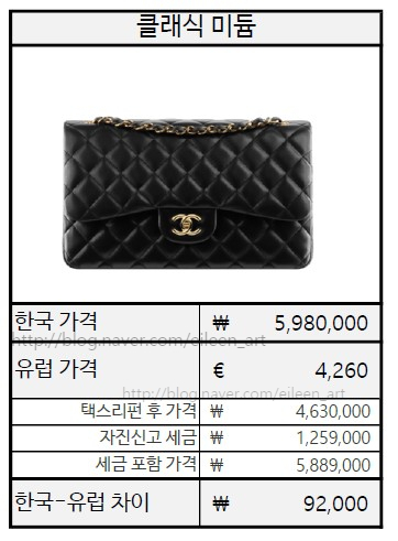 [쇼핑] 샤넬가격 정리, 파리샤넬가격 비교, 샤넬관세