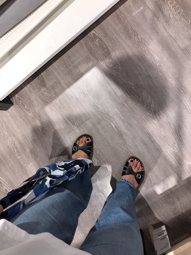 200913 데일리룩 폴로 셔츠 자리 부츠컷 데님팬츠 솔트워터 샌들 클래식 올른올른 플라워 에코백 폴리스 선...