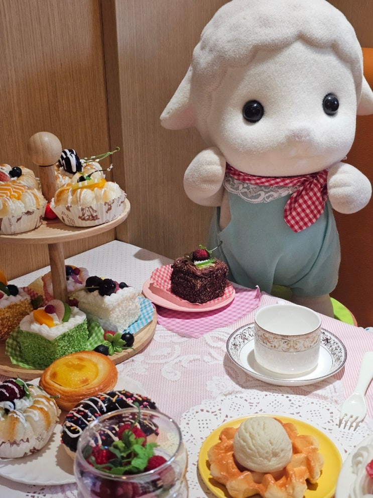 홍대 L7 엔제리너스에서 실바니안 카페한다고해서 호다닥 다녀옴 특정 메뉴를 시키면 작은 실바니안 인형...