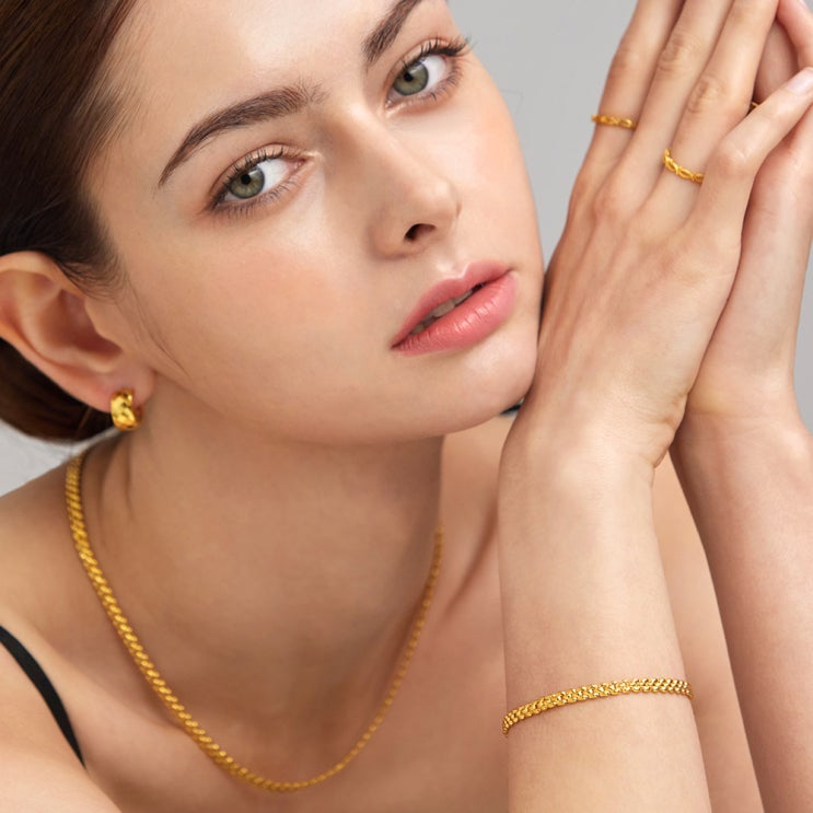 볼드한 텍스처 위에 얹힌 깊은 금빛의 여자순금팔찌 <순금 할로우 누아르 렉스>