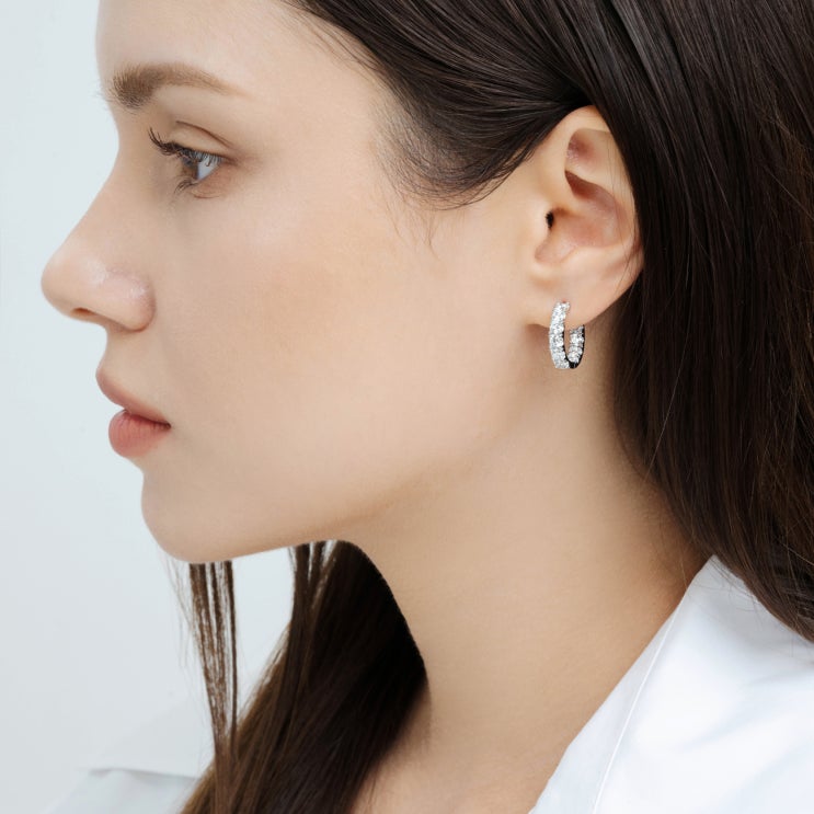 고급스럽고 세련된 디자인의 랩다이아 귀걸이 <더블 랩다이아 원터치귀걸이> #다이아예물 추천♥