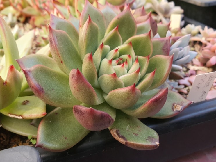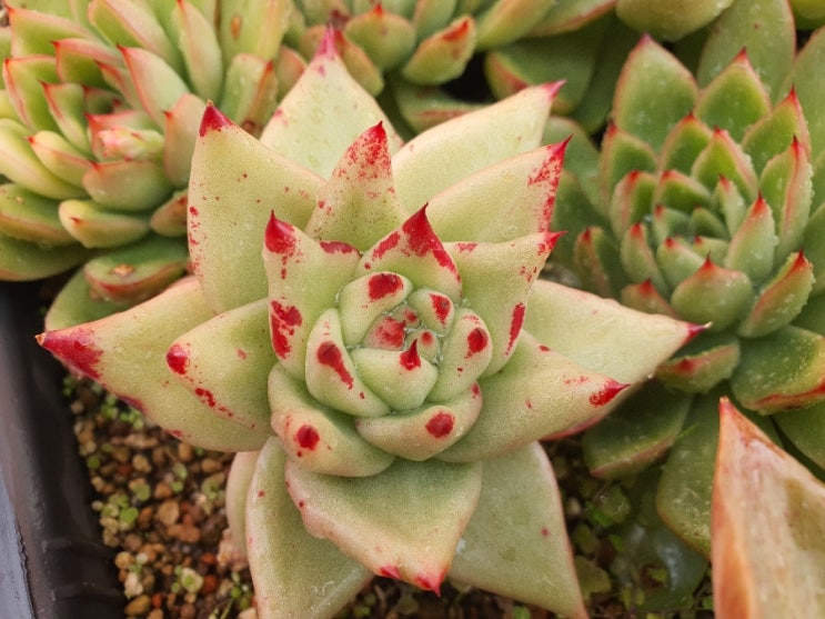 Echeveria agavoides Maria variegated 마리아백복륜금 지난 가을에 커팅한아이인데 이만큼컸다. 바글바...