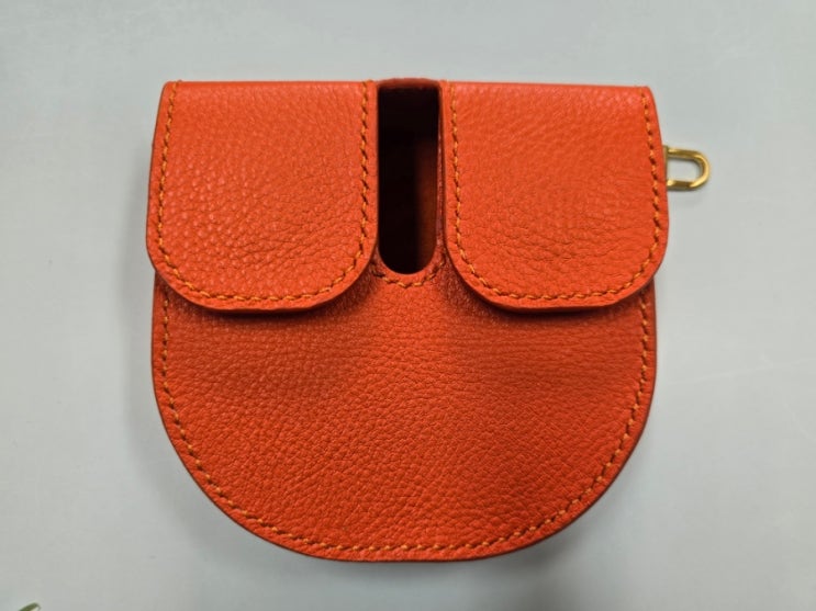 오렌지색 가죽으로 만든 골프퍼터커버 입니다. 둥근 모양이라 최대한 둥글게 제작했습니다. 퍼터리쉬를 집...