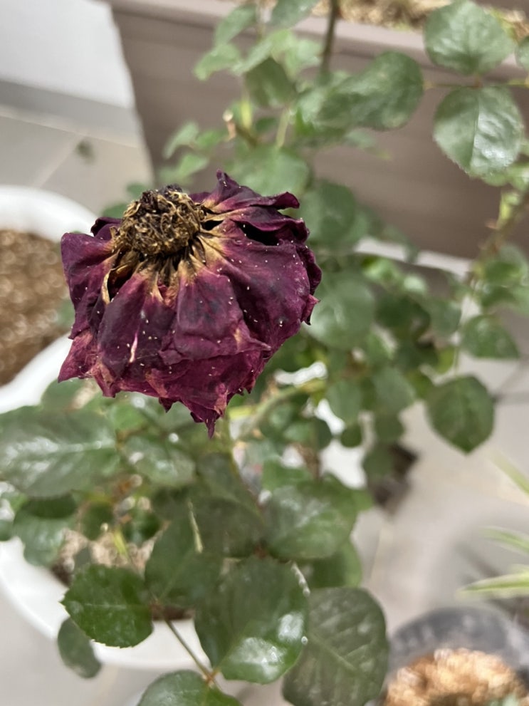 꽃잎에 잔뜩 뭐가 있어서 자세히 들여다보니 거미줄과 벌레들이 우글우글 거렸다,,, 장미에 생기기 쉬운 병...
