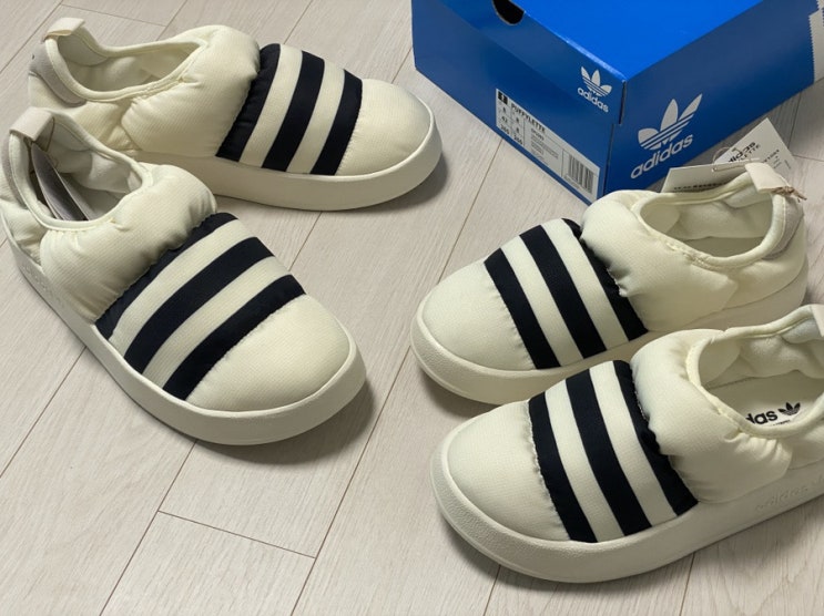 예쁜데 실용성까지 좋은 패딩신발, 아디다스 퍼피렛 화이트 후기(+225, 265사이즈, 커플신발)