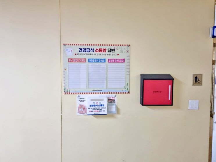 포맥스 아크릴 건강급식 소통 게시판 건의 및 소통함 일체형 설치 끝이없어요~~@.@b 인천학교 아직 예산 처...