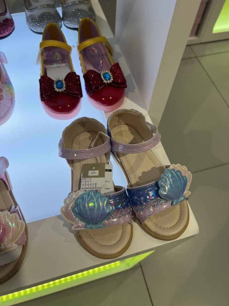 백화점 구경을 갔다가 아이에게 취향을 물어보니 파란색 조개가 붙은 샌들을 골랐다. 외할부지 찬스로 만들...