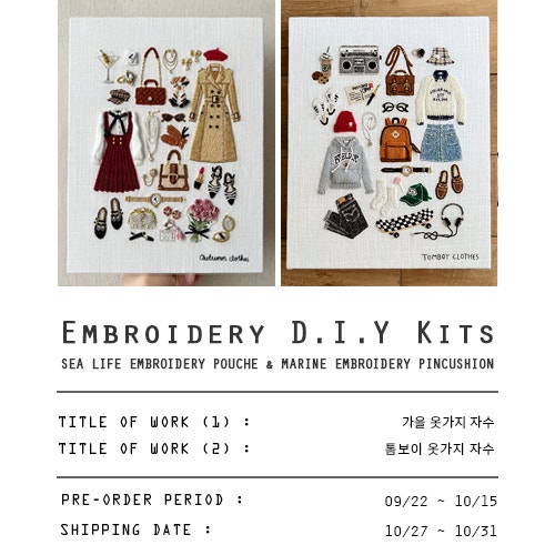 가을 자수 패키지 판매 '가을 옷가지 자수 & 톰보이 옷가지 자수' (아뜰리에올라 프랑스자수)