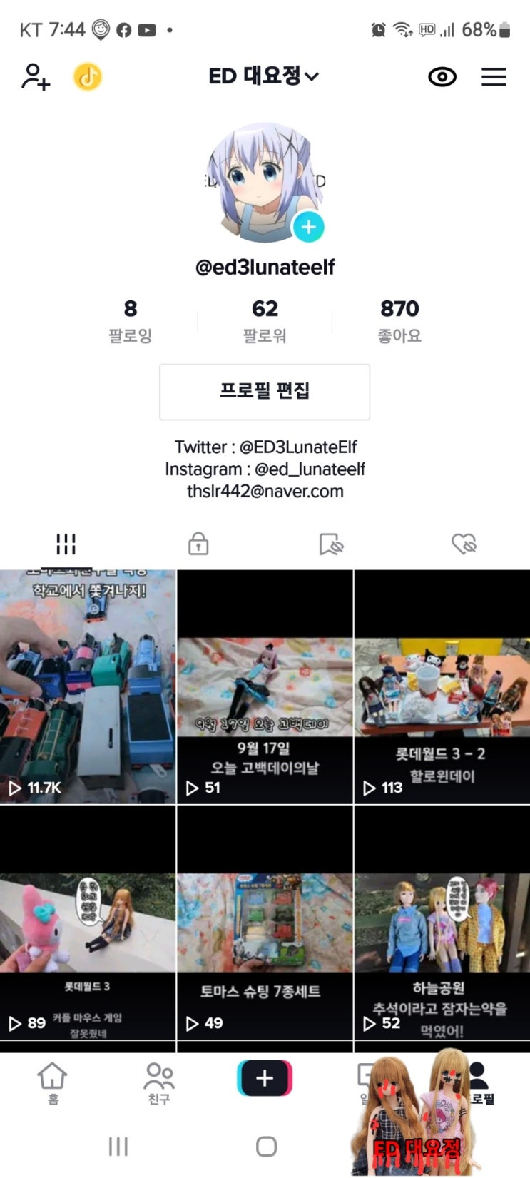 어제부터 틱톡 커 보니까 처음봅니다.